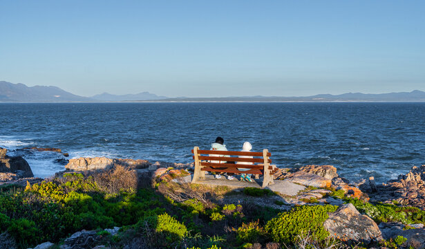 Birds perched on cliff ledge overlooking turbulent ocean waves