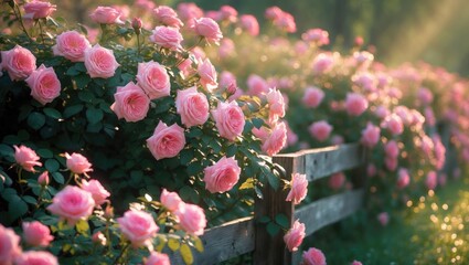 Pink roses on rustic wooden surface creating romantic atmosphere