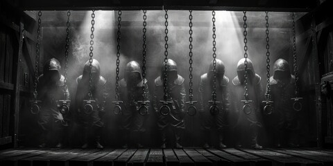 mysterious hooded figure wearing dark , isolated on a black background with copy space