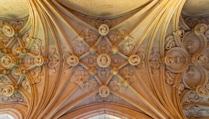 Gallery of the medieval cloister in Gothic and Manueline style of the Batalha monastery, Portugal