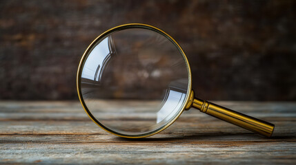 Vintage magnifying glass on a weathered wooden table, symbolizing exploration, discovery, and close examination