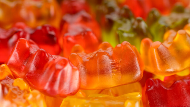 Colorful assorted jelly candies in close up