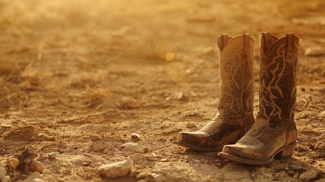Worn Cowboy Boots in Golden Sunset