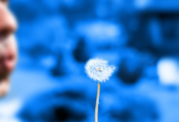 art photo of dandelion seeds close up on natural blurred background