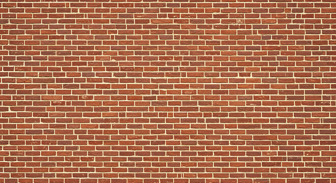 A detailed close up view of a classic red brick wall with visible mortar lines creating a textured background pattern