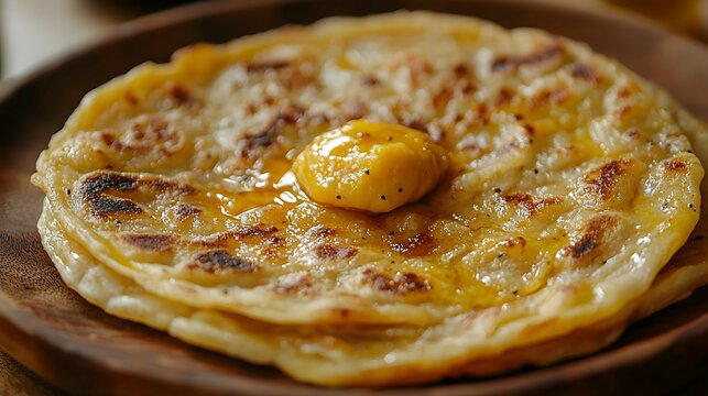 Close Up Of Traditional Roti Bread On Rustic Plate Images