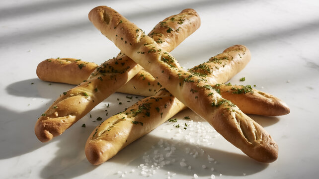 Closeup of gourmet breadsticks with rich texture