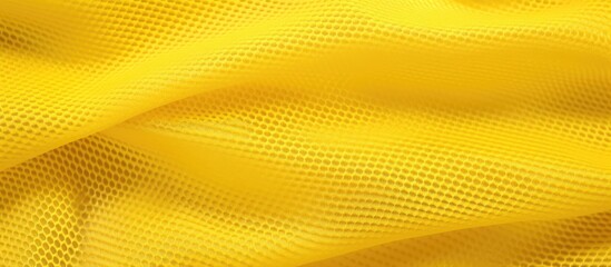 Close-up view of a vibrant yellow fabric with an extensive amount of mesh, ideal for sportswear designs and backgrounds