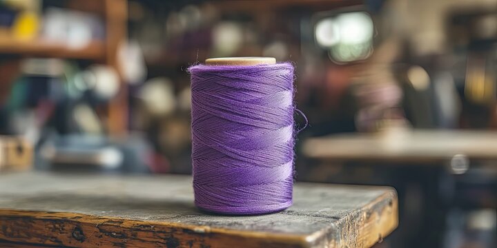 A close up of weaving machine. A loom machine for clothing or woven label. Weaving machine for garment industry. Yarn thread lines on the weaving loom machine for clothing  in textile factory.