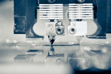 Close-up view of technology modern 3d printer in action