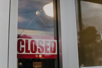 A sign that says "Sorry, we're closed". Shops