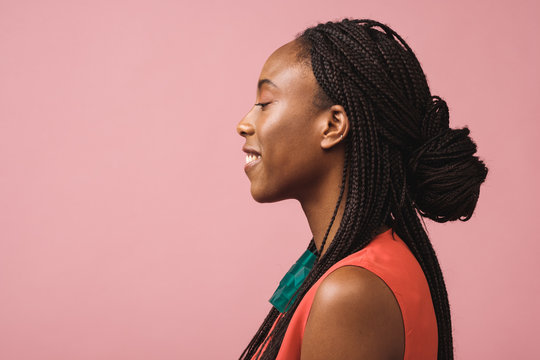 African-american fashionable woman with braids studio portrait