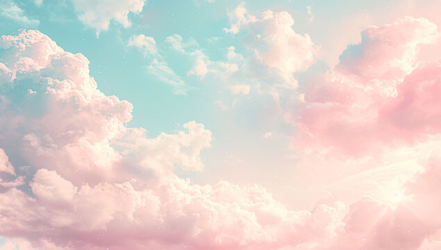 Dreamy pastel pink cumulus cloud floating on cyan sky minimalist airy surreal background