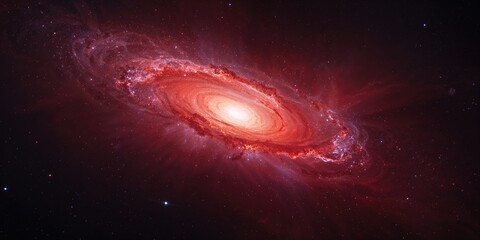 Cosmic red emblem with pink clouds in starry sky