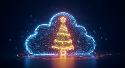 Abstract tech art shows cloud computing concept. Digital cloud shape, circuit board, network connection, data transfer, innovation, modern infrastructure. Cloud migration, digital transformation for