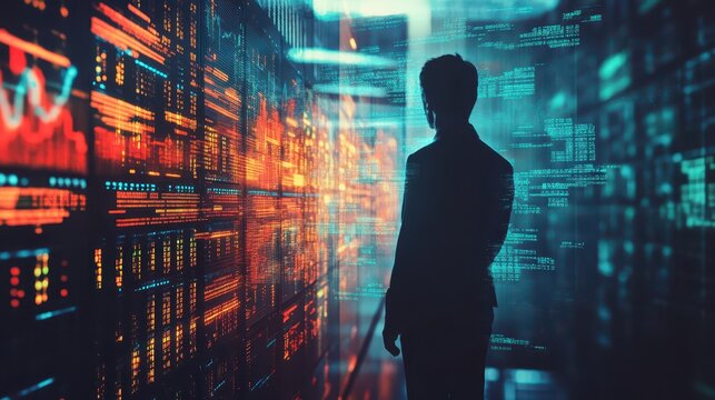 Professional Man in Data Center with Digital Interface