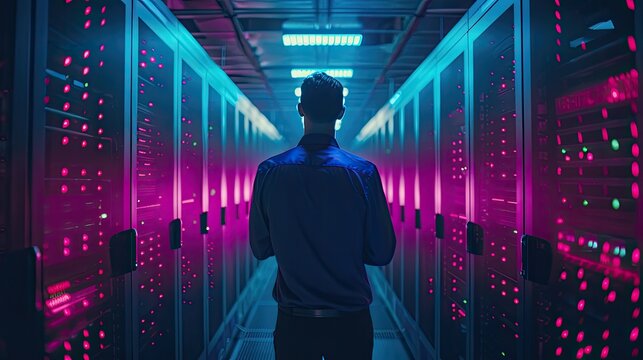 It technician overseeing data processing in server room