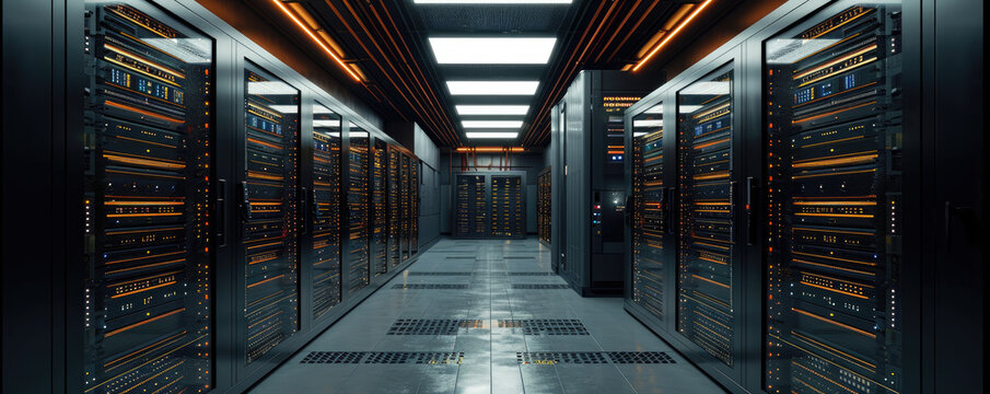 Double exposure of businessman with servers technology in datacenter in IT enterprise services concept