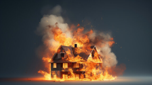 Burning house on a dark background.