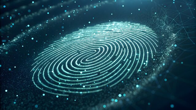 Digital fingerprint scanning technology concept for personal identification and cyber security, biometric authentication, abstract high tech background