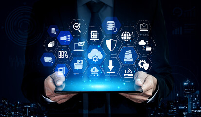 Concept design of managing online documents with cloud storage, digital file management, and secure sharing. Online documents improve workflow, online documents enhance security. Entice