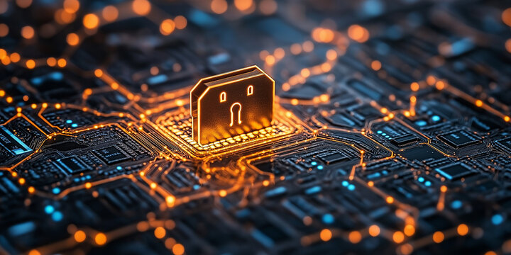 Digital padlock and cyber security technology concept