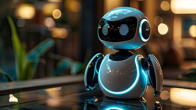 An artificial intelligence assistant concept with a digital avatar and voice command interface in a smart home environment.