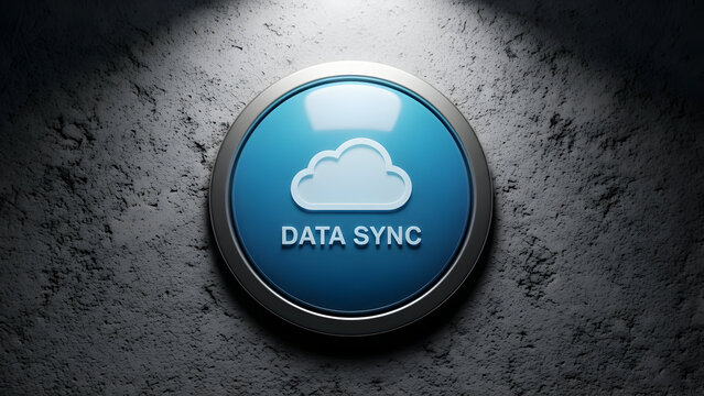 Modern data sync icon on sleek blue interface button