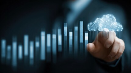 Businesswoman engages with digital data growing cloud icons
