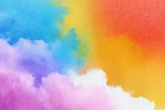Watercolor gradient of colorful cloudlike forms on textured paper