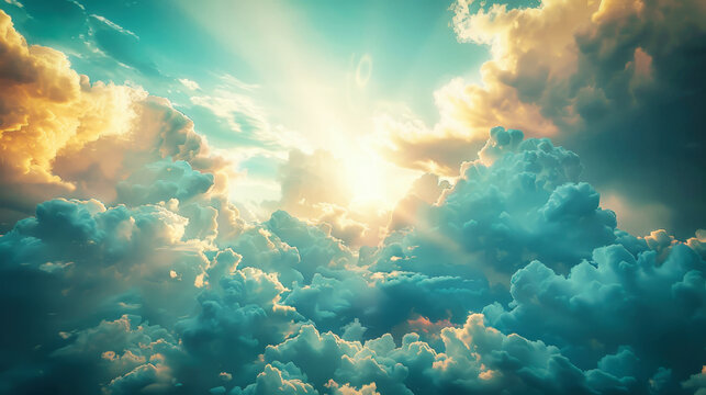 A collection of blue, fluffy clouds in various shapes and sizes, perfect for graphic design or illustration.