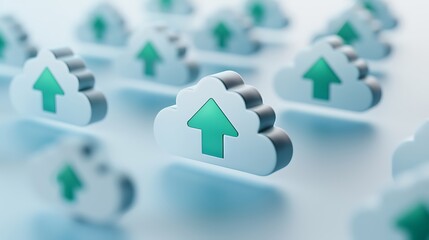Cloud Storage Concept with Upward Arrow Icons Representing Data Upload and Digital Cloud Technology