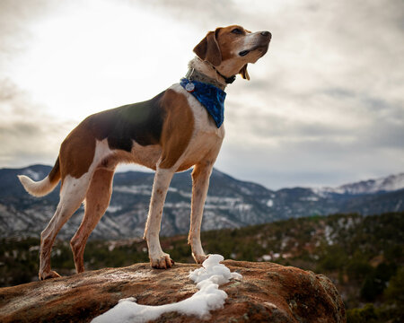 American Foxhound Dog Hiking in Desert in Garden of the Gods Colorado