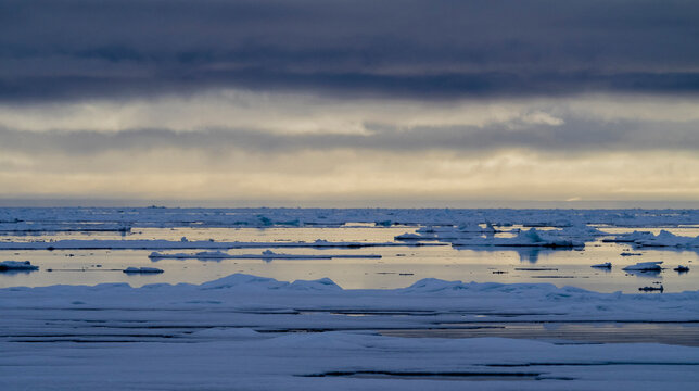 Arctic Ocean, Norway, Svalbard. Reflection on icy ocean.