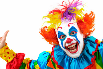Portrait of a man dressed as a clown with sand desert background