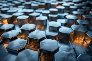 Glowing abstract yellow gold bokeh cluster drifting on data dashboard, with white dot map clusters