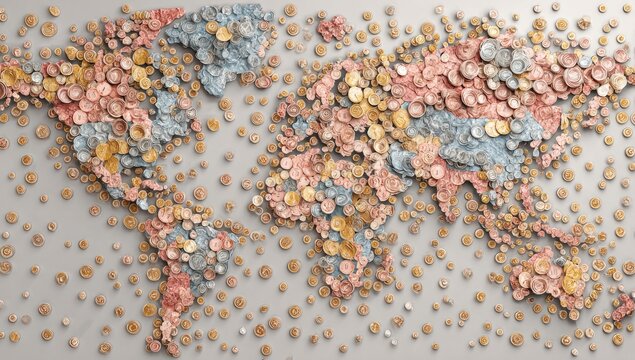 World map constructed from colorful, textured circular elements