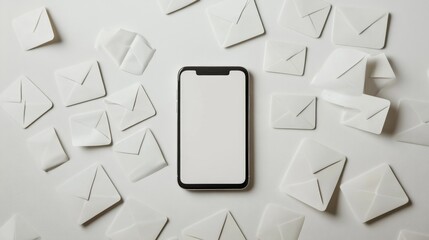 A smartphone showing a collection of unread emails in a crowded inbox. Featuring digital clutter and overwhelm