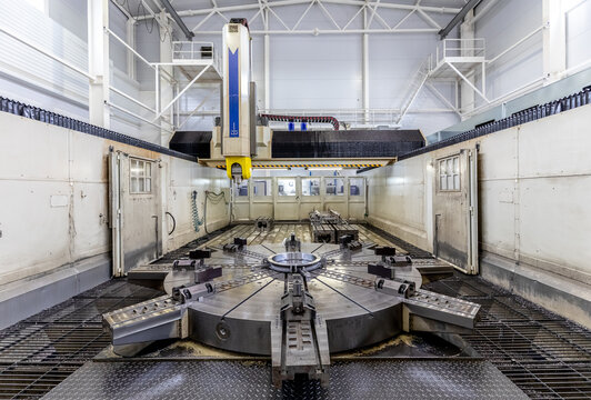 large CNC metal milling machine in the interior of a Metalworking plant.