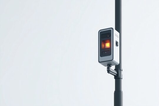 Minimalist air quality sensor mounted on pole in urban setting during daylight