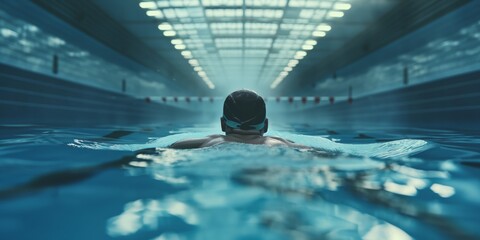 Competitive swimmer focuses on performance in an indoor pool during training session