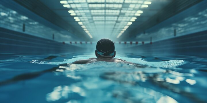 Athlete swimming laps in olympic size indoor pool training for competition