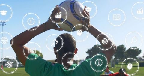 Female athlete training core, coach watching, augmented fitness data and code overlay