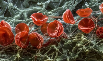 Blood Clot Formation Close-Up A Detailed View of Cellular Aggregation and Structure