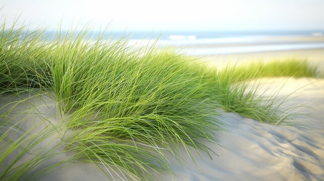 Peaceful coastal landscape with lush green fields and clear blue sea