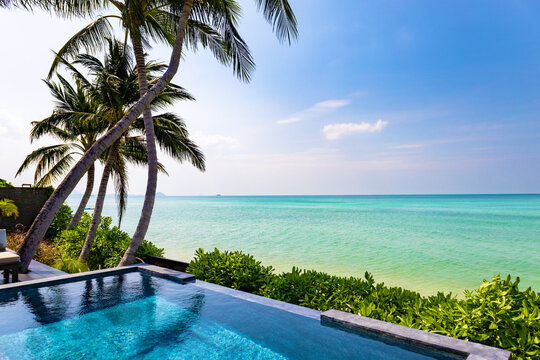 Swimming pool and palm trees, Nathon Beach, Island Ko Samui, Southeast Thailand.