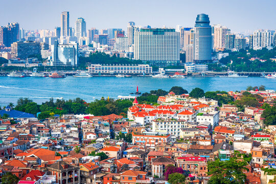 Xiamen, China City Skyline from Gulangyu Island 201