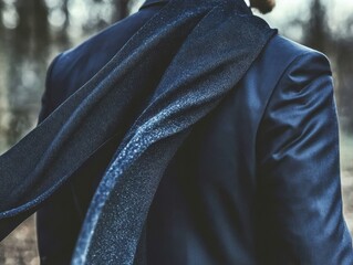 Elegant motion captured as formal coat tails billow in the wind, embodying sophistication and style in a serene outdoor setting
