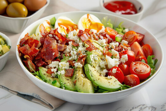 Classic Cobb Salad with Bacon, Avocado, Cherry Tomatoes, and Hard-Boiled Eggs