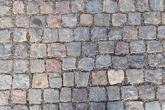 Cobblestone street surface of square stones